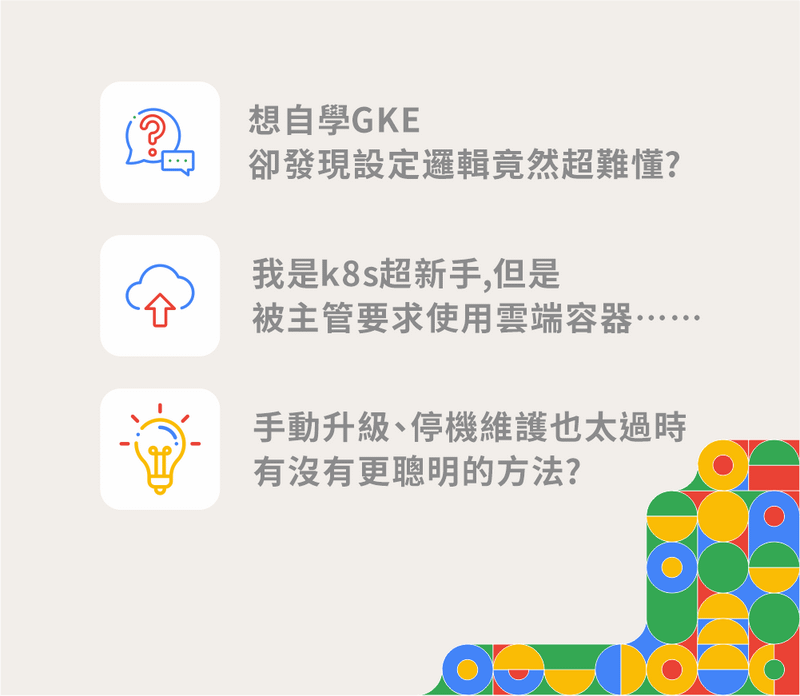 - 具 Docker 和 Kubernetes 等相關經驗,現在想轉往Google雲端平台使用的人