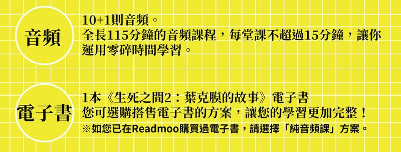 訂購課程後,城邦會將您的email轉交給電子書平台Readmoo,由該平台派送電子書給您(每週五提供名單,隔週陸續進行派送)。如您購買後兩週內未收到信件(信件匣與垃圾信件匣),請您留言詢問,我們會盡快為您查詢。