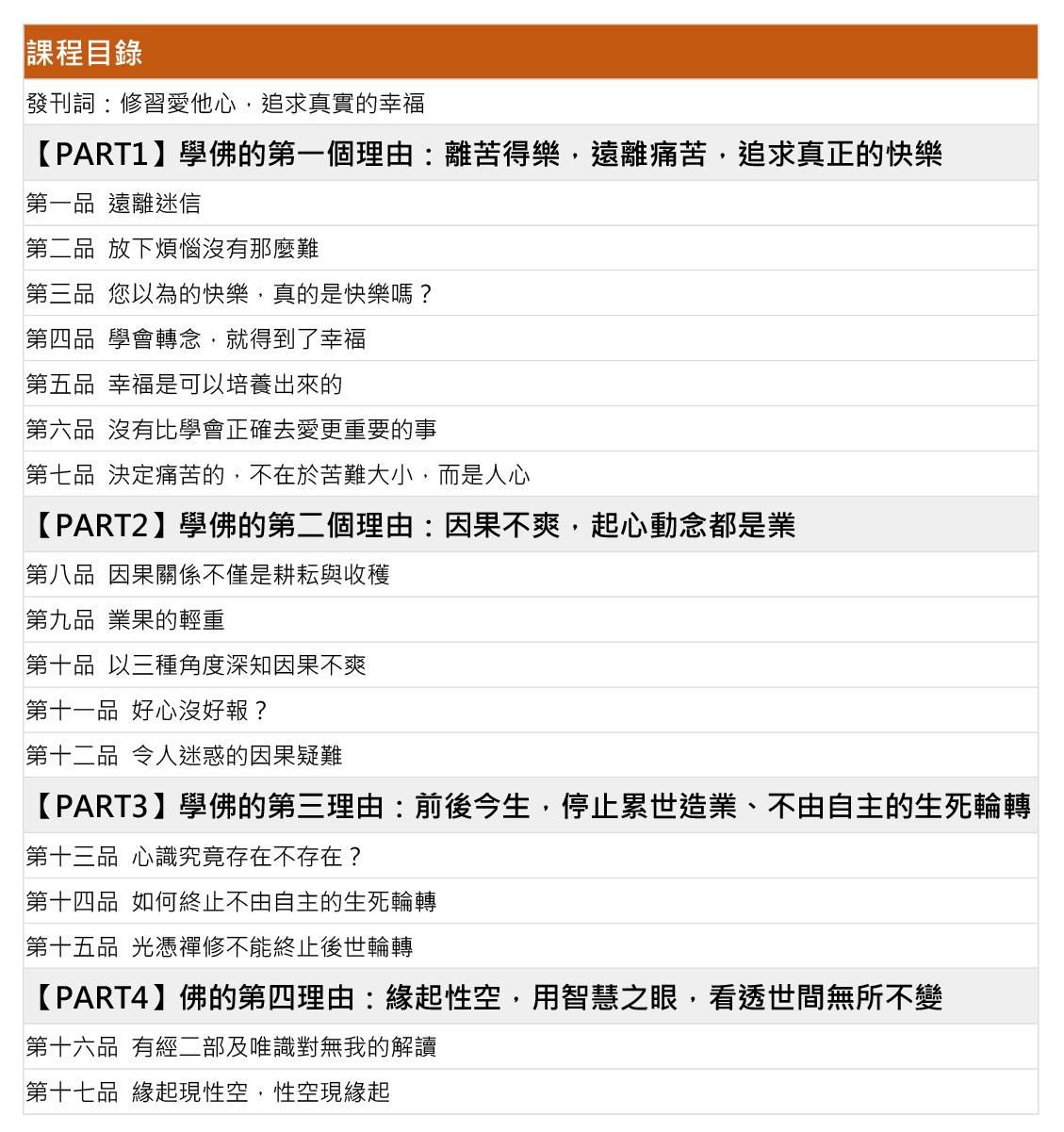 這套課程將分成四大部分,講述學佛的理由與目的: