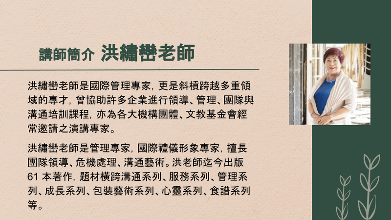 溝通是藝術,而非技術,需要以「心」相應,以「心」體「心」,除了基本原則之外,必需全面體察溝通對象,隨機因應,所以溝通的學習是無止境的。在工作上,在私人生活中,我們日日時時都在溝通,這個課程,將協助您建立良好的溝通魅力,使您無往不利。