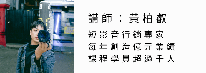 這堂課程結合講師在攝影、剪輯及行銷方面的商業實戰經驗,幫助學員打造品牌視覺力,實現內容變現與精準行銷。講師為自家的產品投放影片廣告(品牌經營),也為其他有行銷需求的客戶投放廣告(訂單轉換),平均每年達成上億營業額,成效斐然。講師同時兼具短影音行銷需求方與供給方的經驗,最了解市場需求與目標,創造出此獨一無二的課程內容。