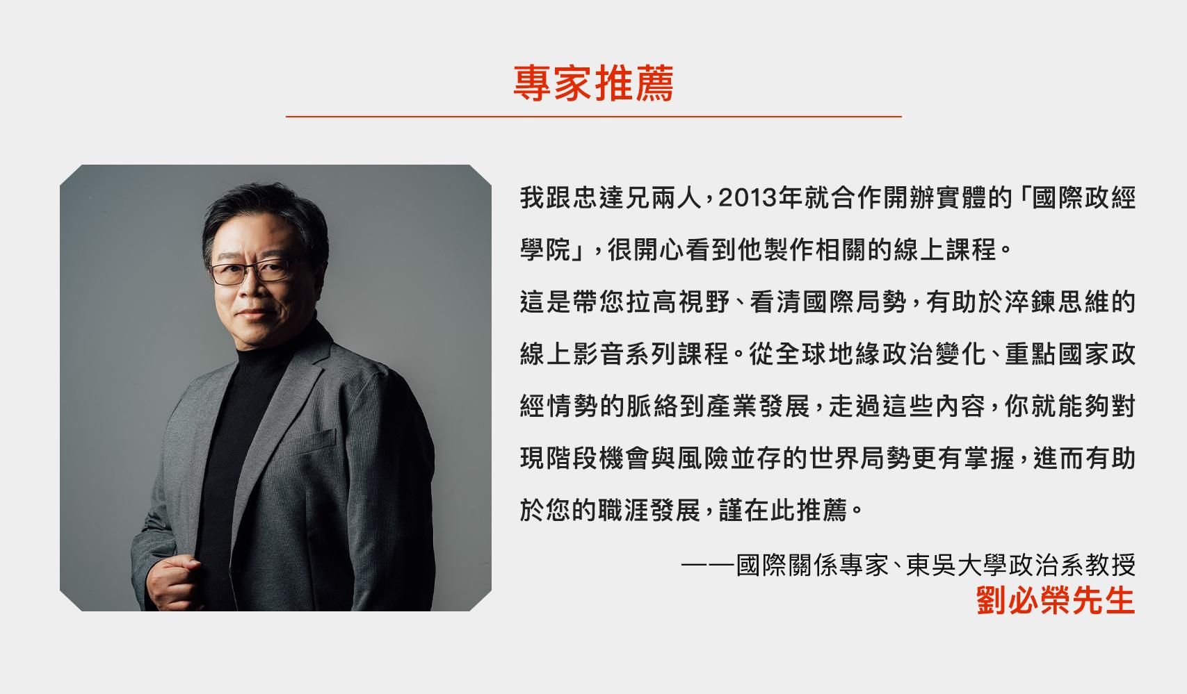 國際政經專家呂忠達,在課程中用深入淺出的方式,解讀近一個世紀的全球政經概要,範圍涵蓋美、歐、日、中,以及其他新興國家與地區。透過全面性的理解、辯證、反思,幫助你重新建構個人對政治與經濟的觀點,為你的媒體識讀能力,打下更堅實的基礎。