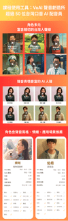 - 突破創作場域限制: 不再需要隔音棉和昂貴麥克風,只需要選擇符合作品內容的聲優聲線,即可產出穩定的音檔。