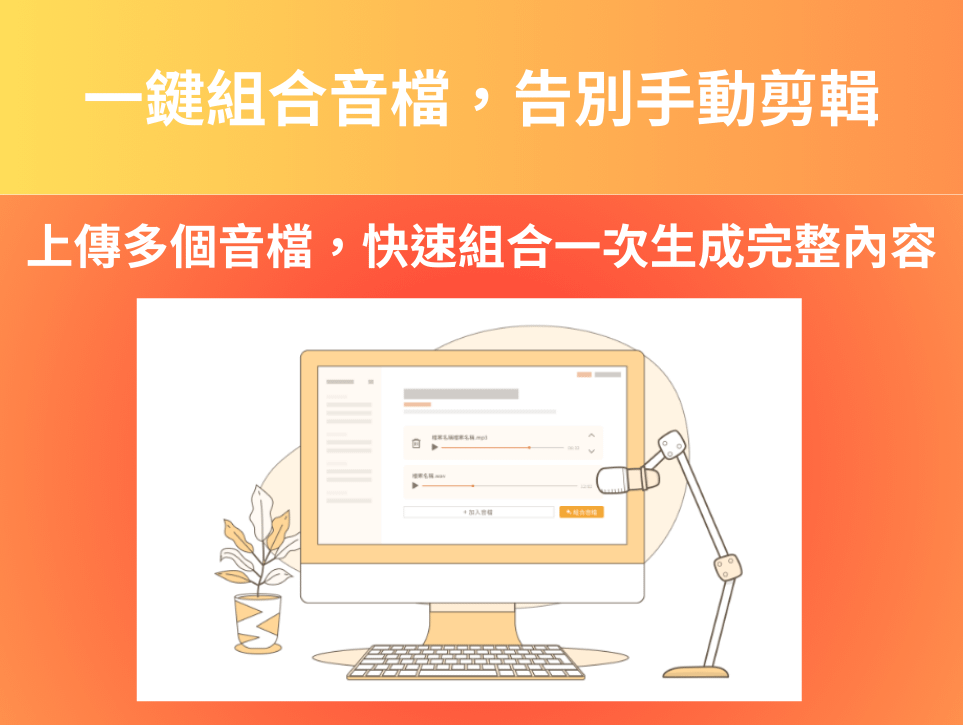 - AI 音檔組合:輕鬆組合多個 AI 聲音片段,打造完整音檔