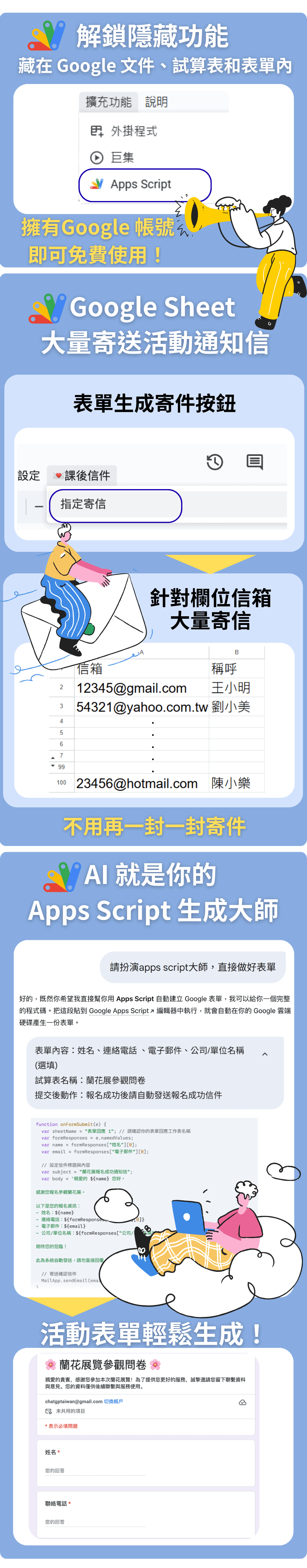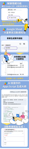 👊 你將學會如何「詠唱 AI 指令」,讓 AI 為你編寫程式碼,啟動隱藏在 Google 試算表、文件與信箱中的超能力 Google Apps Script。