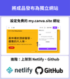 - 完全免費的網頁託管:一鍵發布到 Canva 提供的免費網域,立即上線。