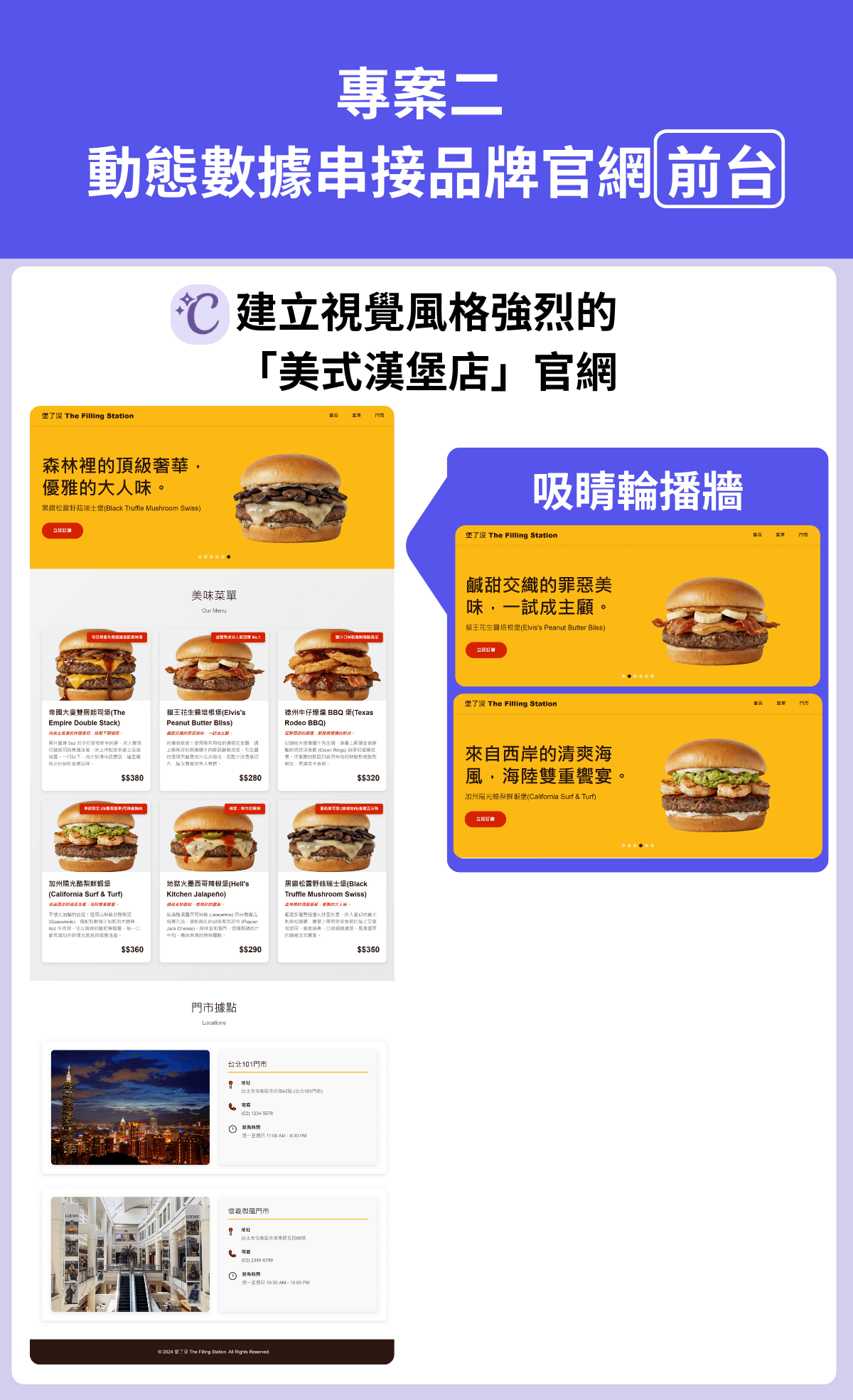 - 品牌視覺與動態首頁:製作吸睛的輪播牆與視覺風格。