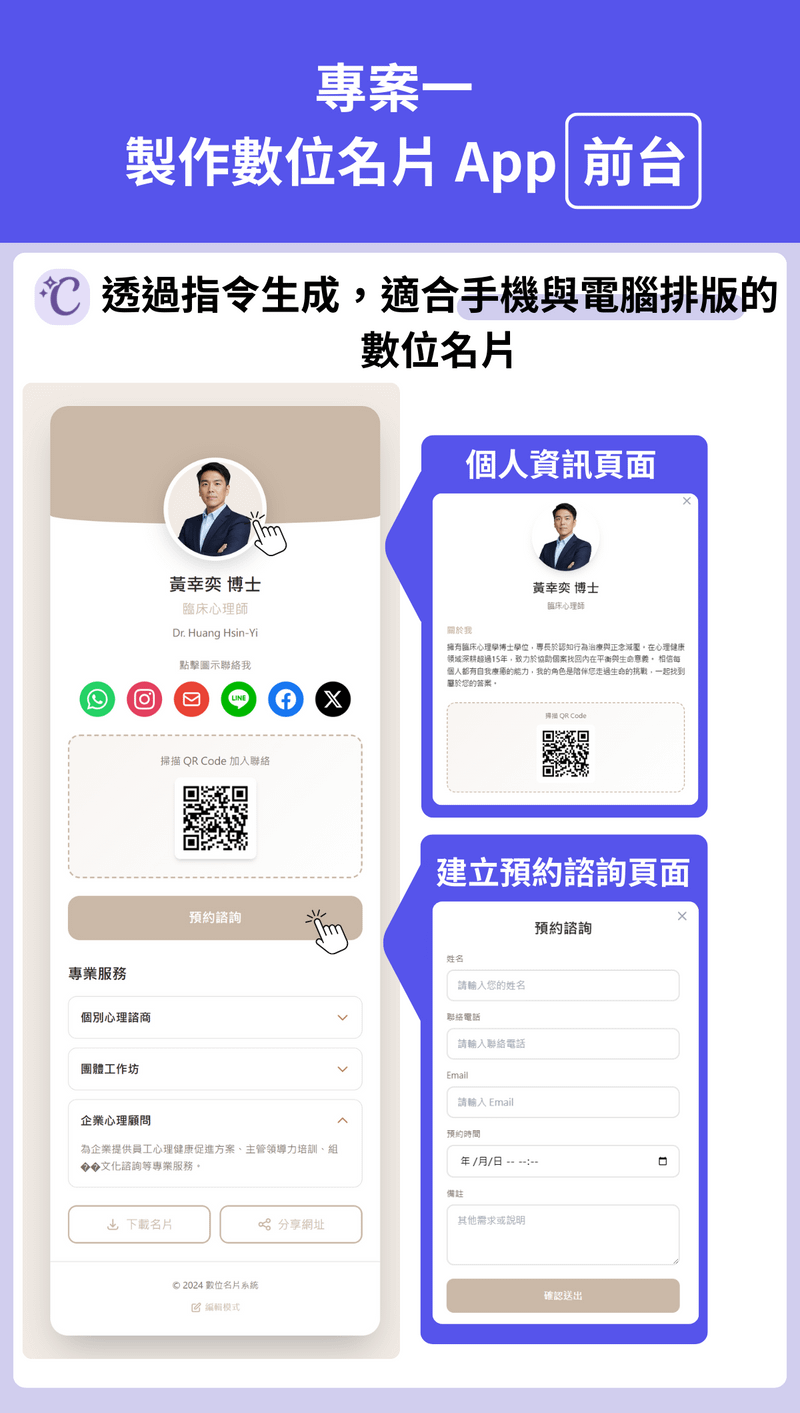 雙專案實作:親手打造具備後台編輯功能的數位名片 App 與品牌官網 。