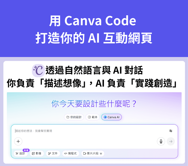 - 你負責「描述想像」:告訴 AI 你要的風格、功能與互動方式。