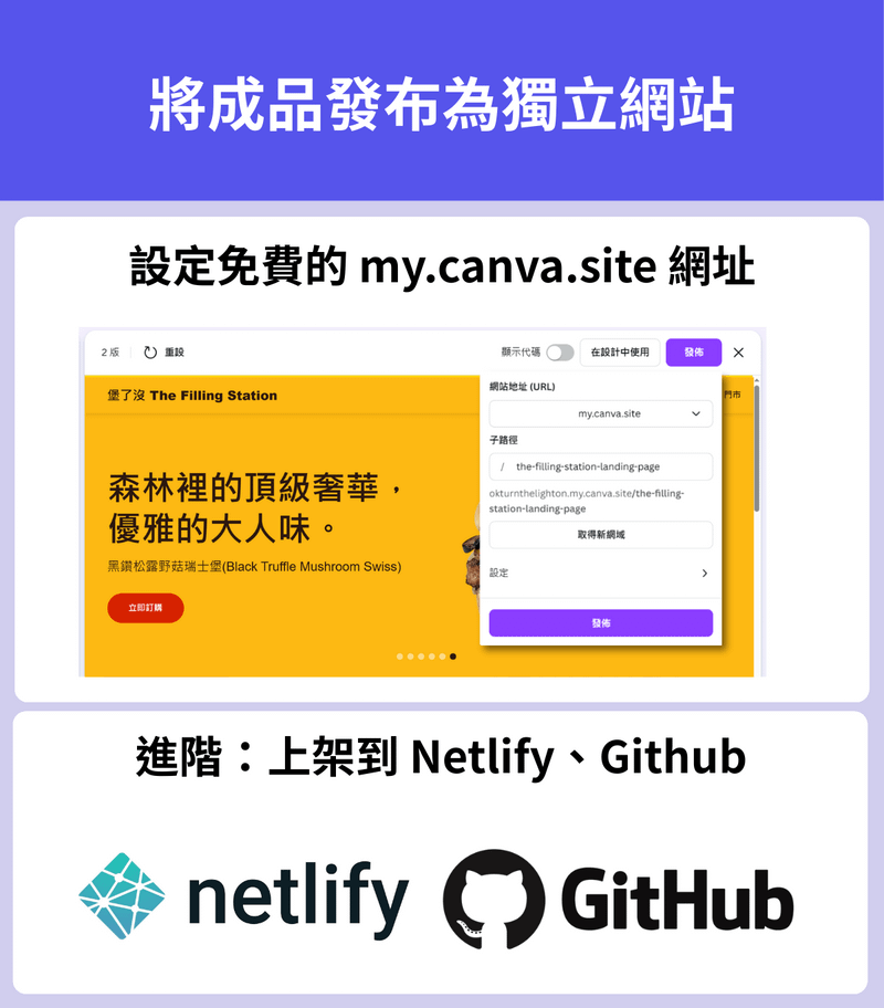 快速部署上線:學習如何將成品發布至免費網域或 Netlify 等外部平台 。