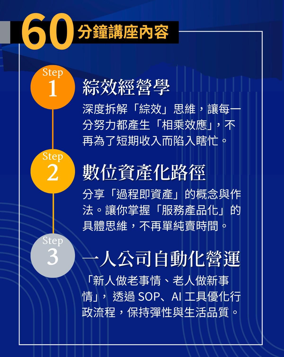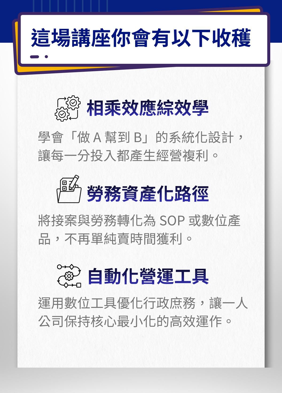 (3/25場)一人創業的公司獲利系統:運用「綜效思維」將勞務轉化為數位資產