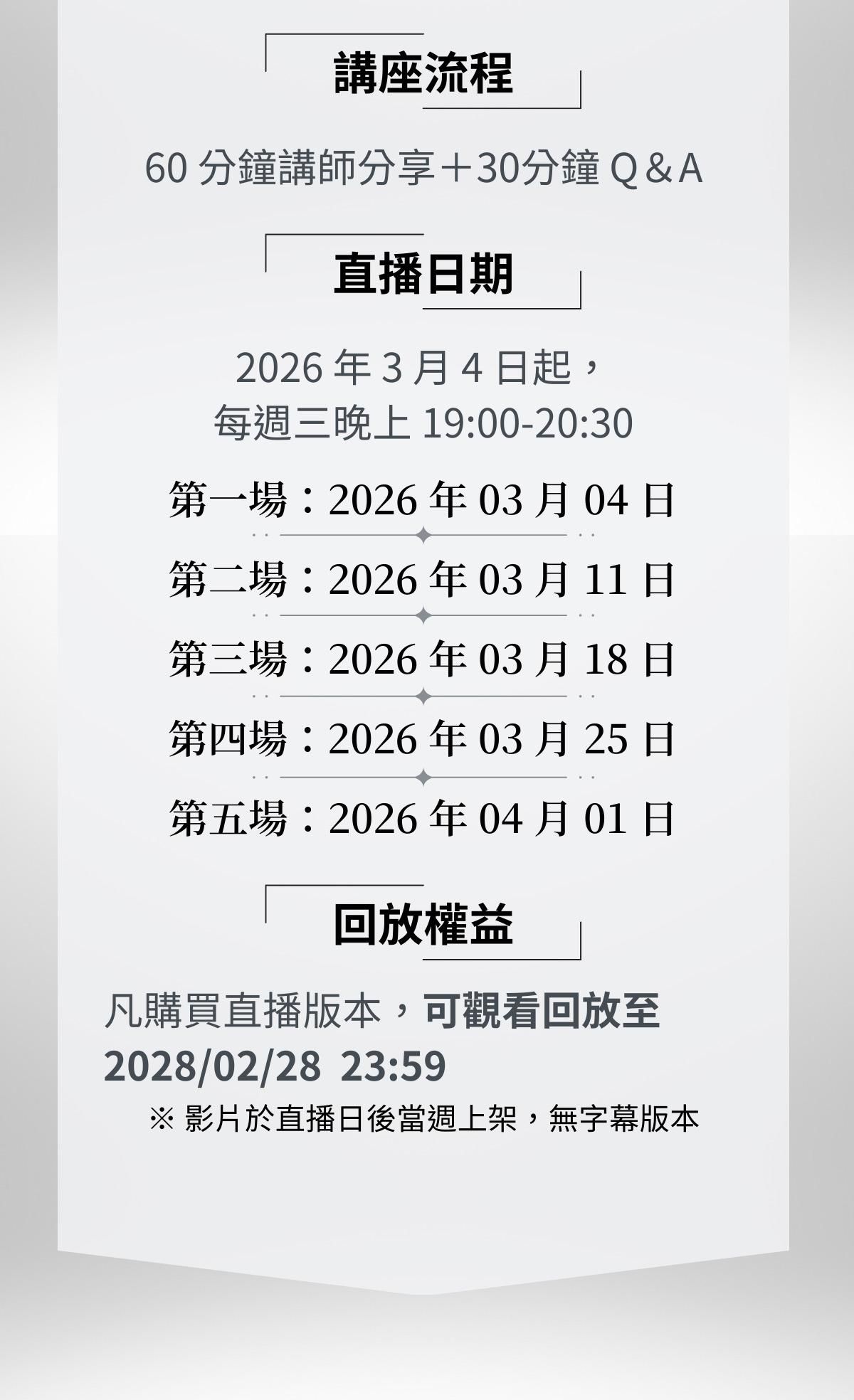 【公告】03/04 第一場直播回放影片已經上架囉,請至「課程內容」觀看。