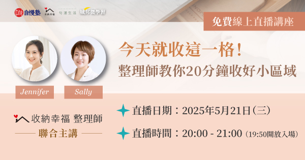 【免費線上直播講座】今天就收這一格!整理師教你20分鐘收好小區域