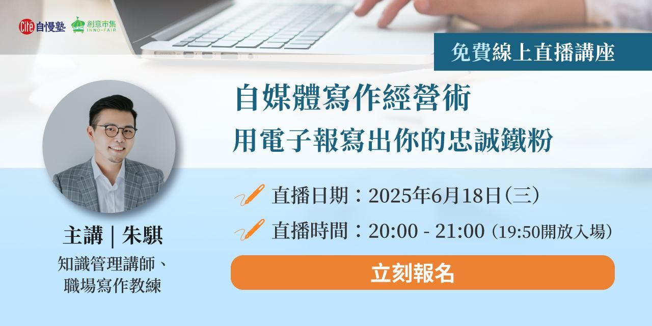 【線上直播講座】自媒體寫作經營術:用電子報寫出你的忠誠鐵粉