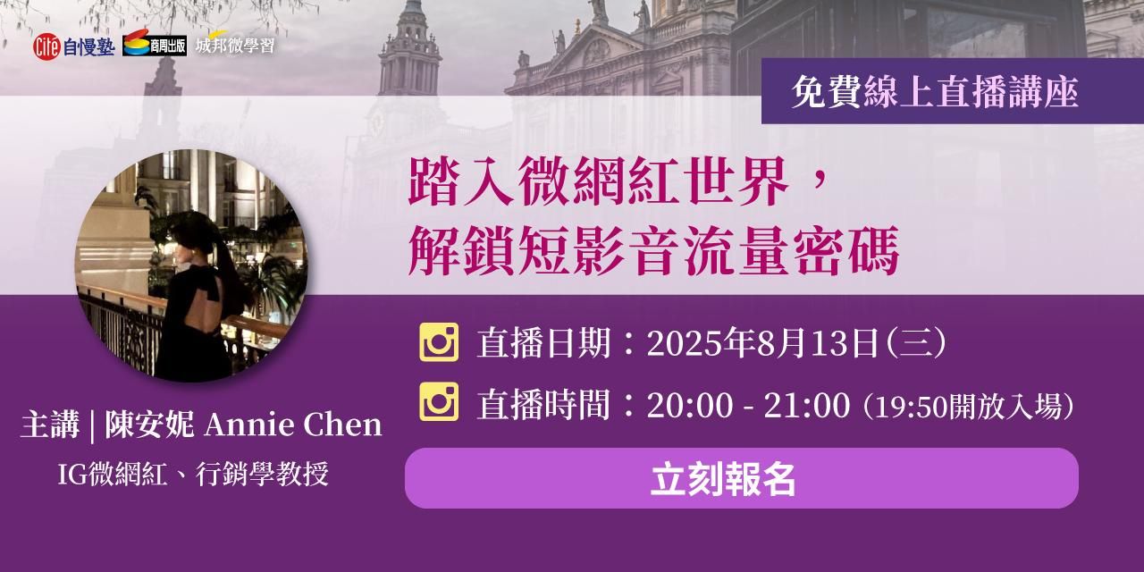 【線上直播講座】踏入微網紅世界,解鎖短影音流量密碼