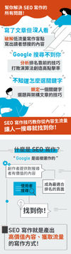 - 「SEO 寫作課」:教你快速學會寫 SEO 文章。(上架於城邦學院)