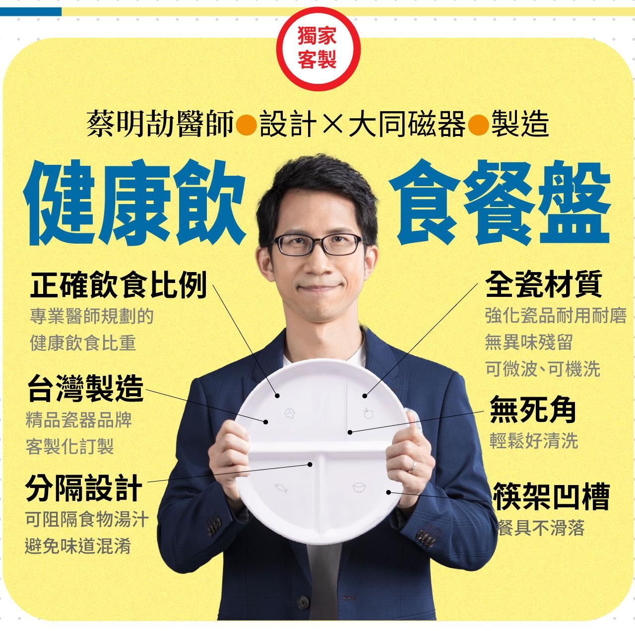 2. 餐盤為蔡明劼醫師委託「漾丰國際有限公司」,向「大同磁器」訂製的商品。購買「單人課程+餐盤方案」者,視為同意本公司將您購課時填寫的個人資料,提供給漾丰國際有限公司,以便將餐盤寄送至您填寫的地址。