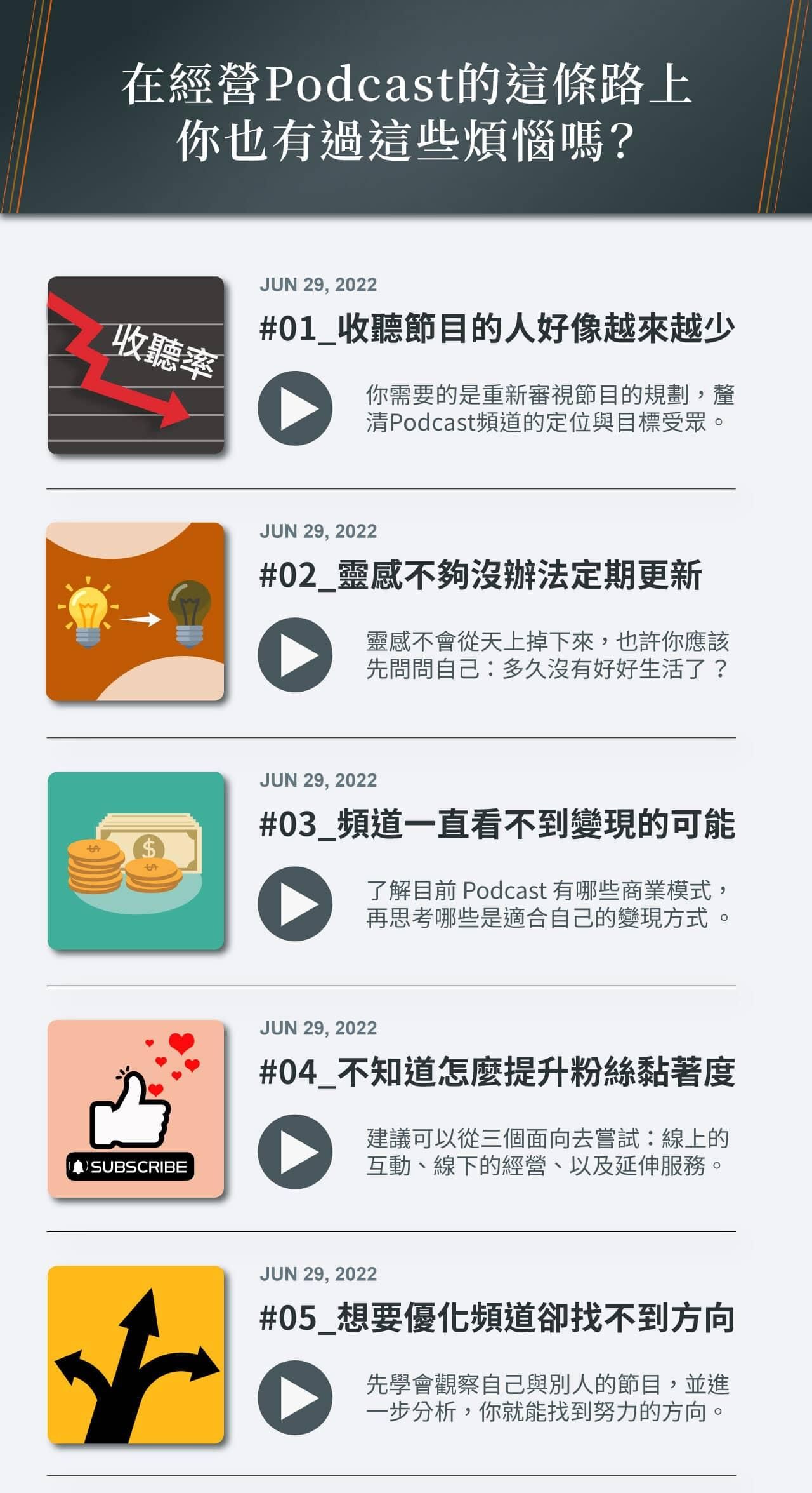 - 是什麼阻礙了你前進?聊聊三個在經營Podcast時最常被討論到的問題。