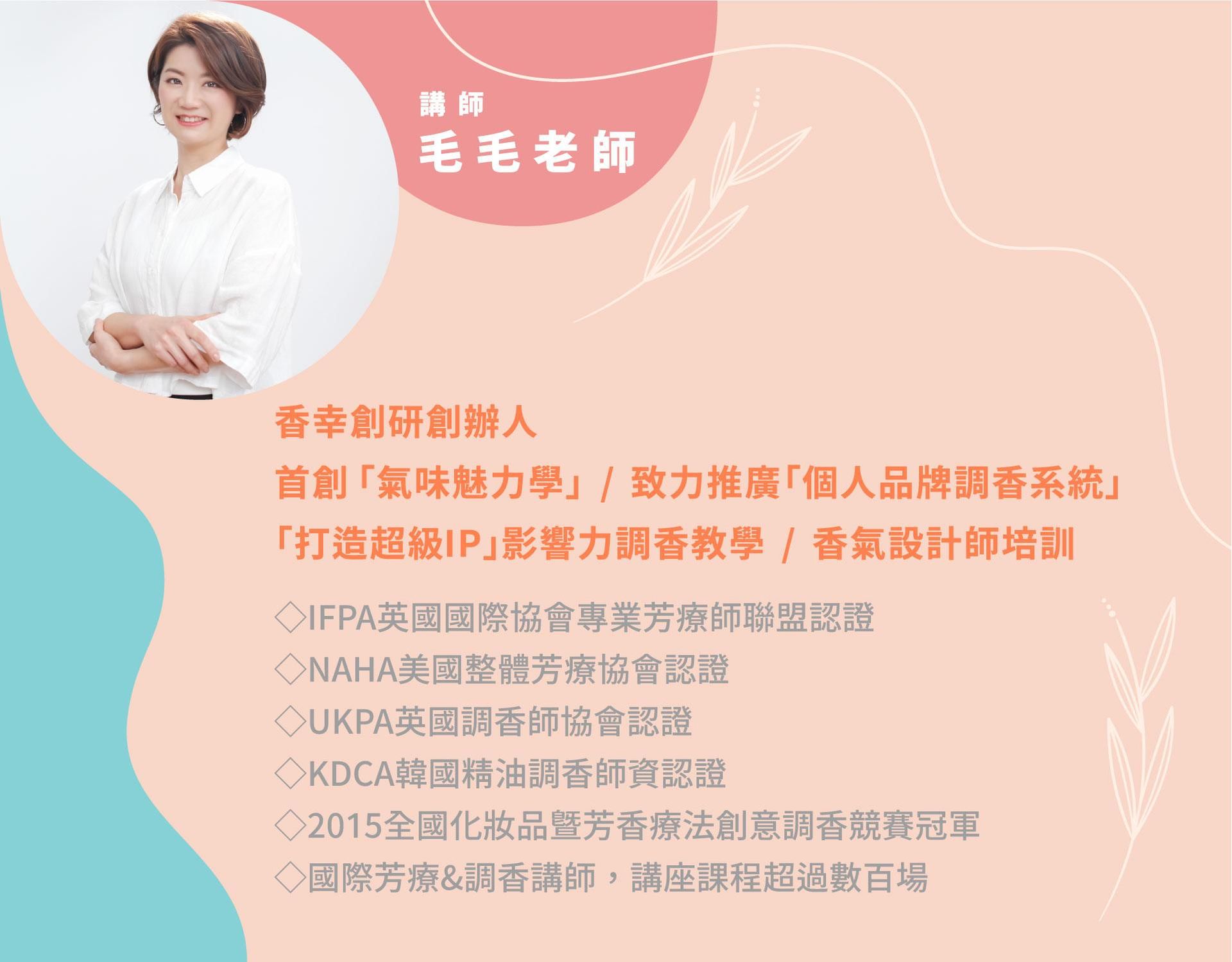 首創 「氣味魅力學」/ 致力推廣「個人品牌調香系統」/ 「打造超級IP」影響力調香教學 / 香氣設計師培訓