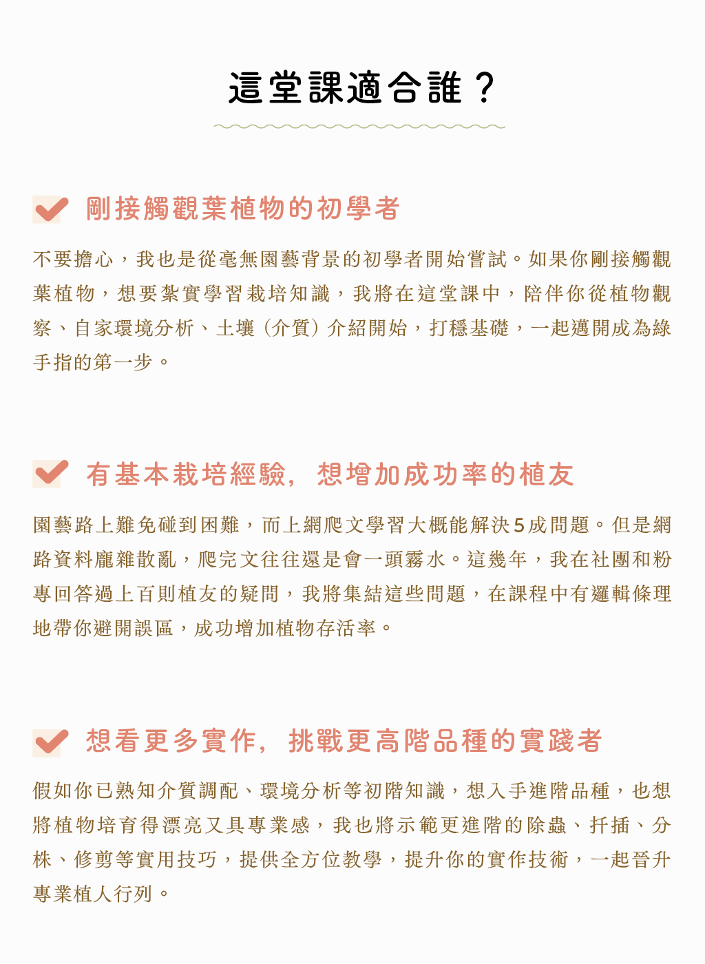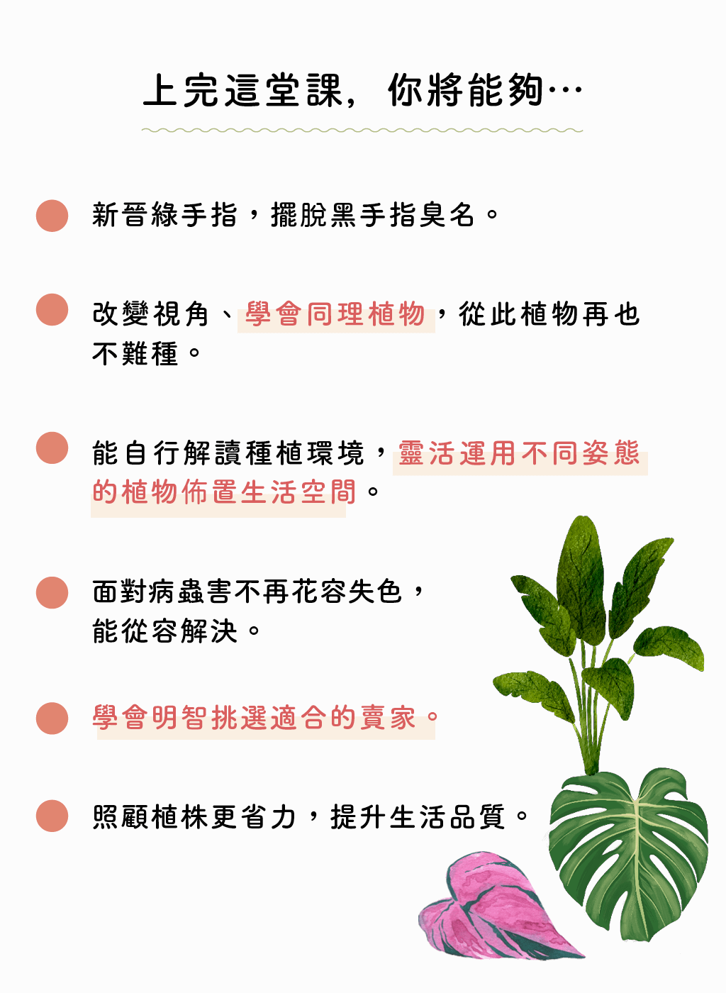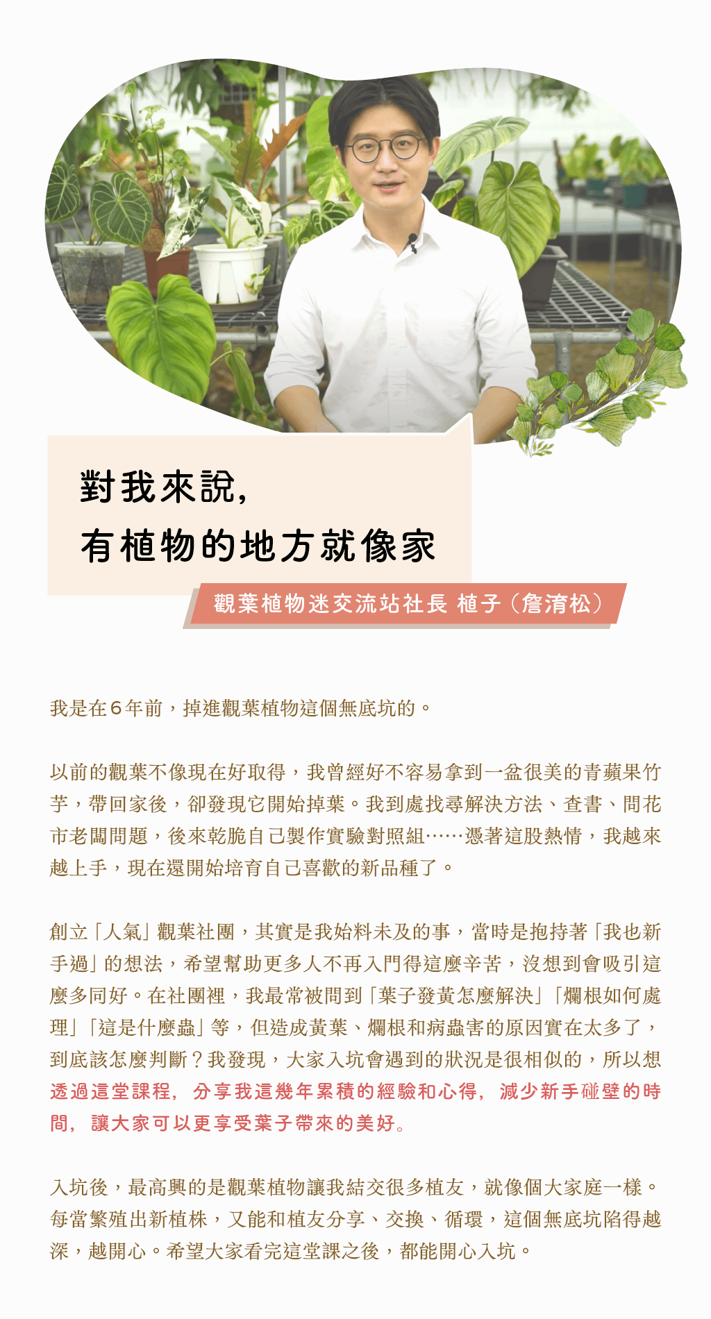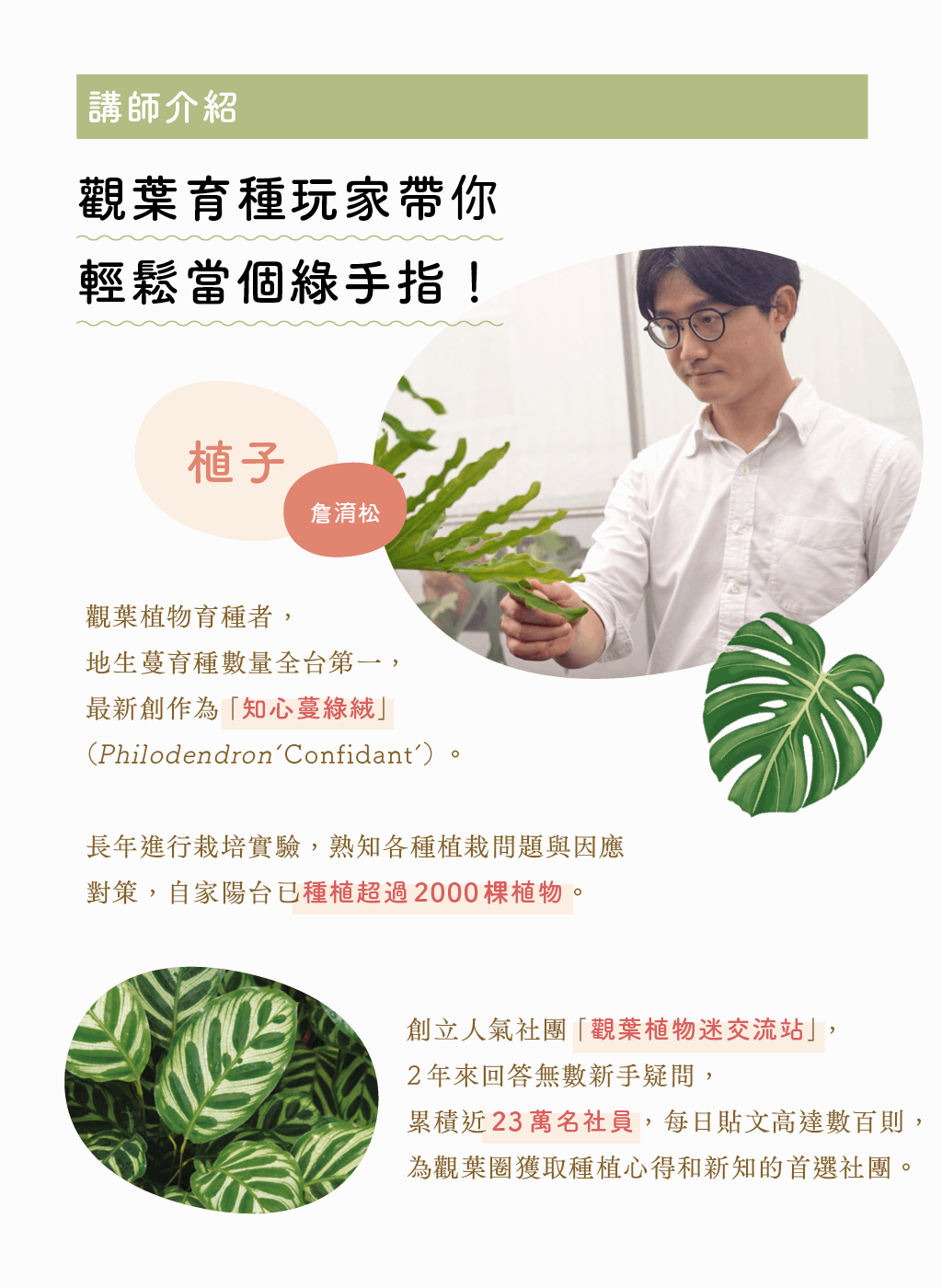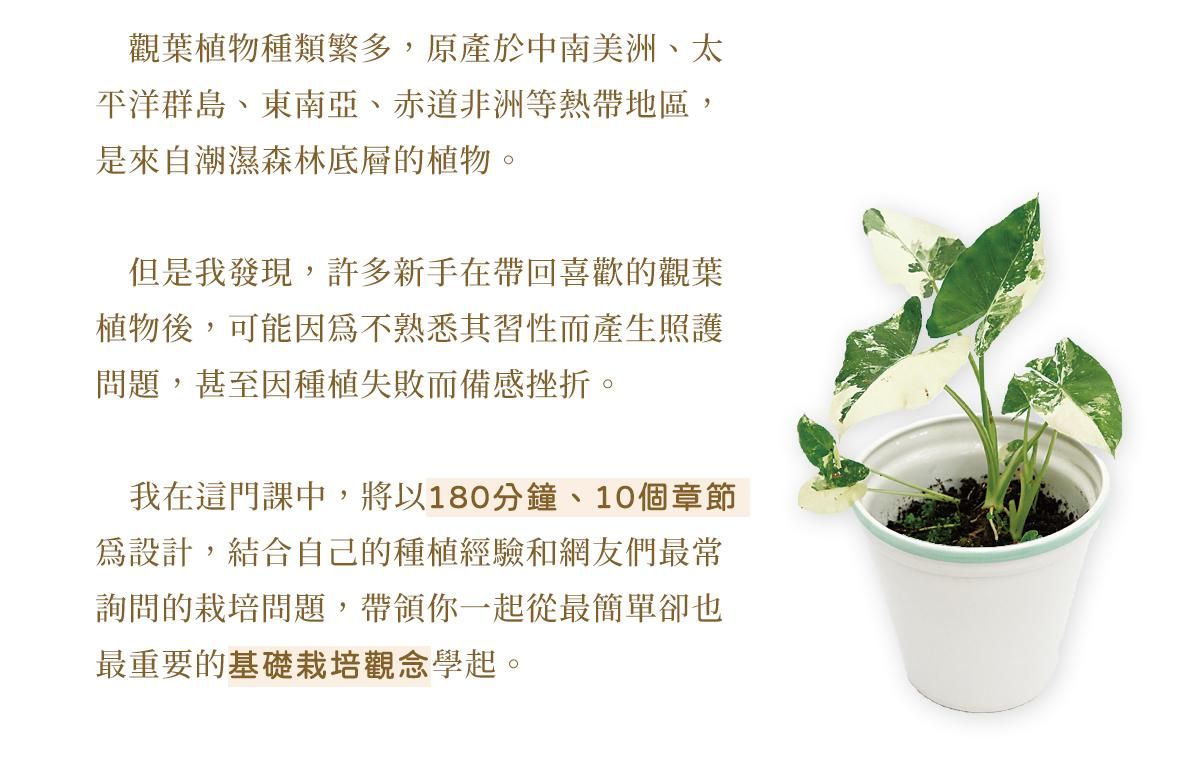 期待透過這門課程,幫助每一位踏入觀葉植物世界的愛好者,成為人人稱羨的綠手指。