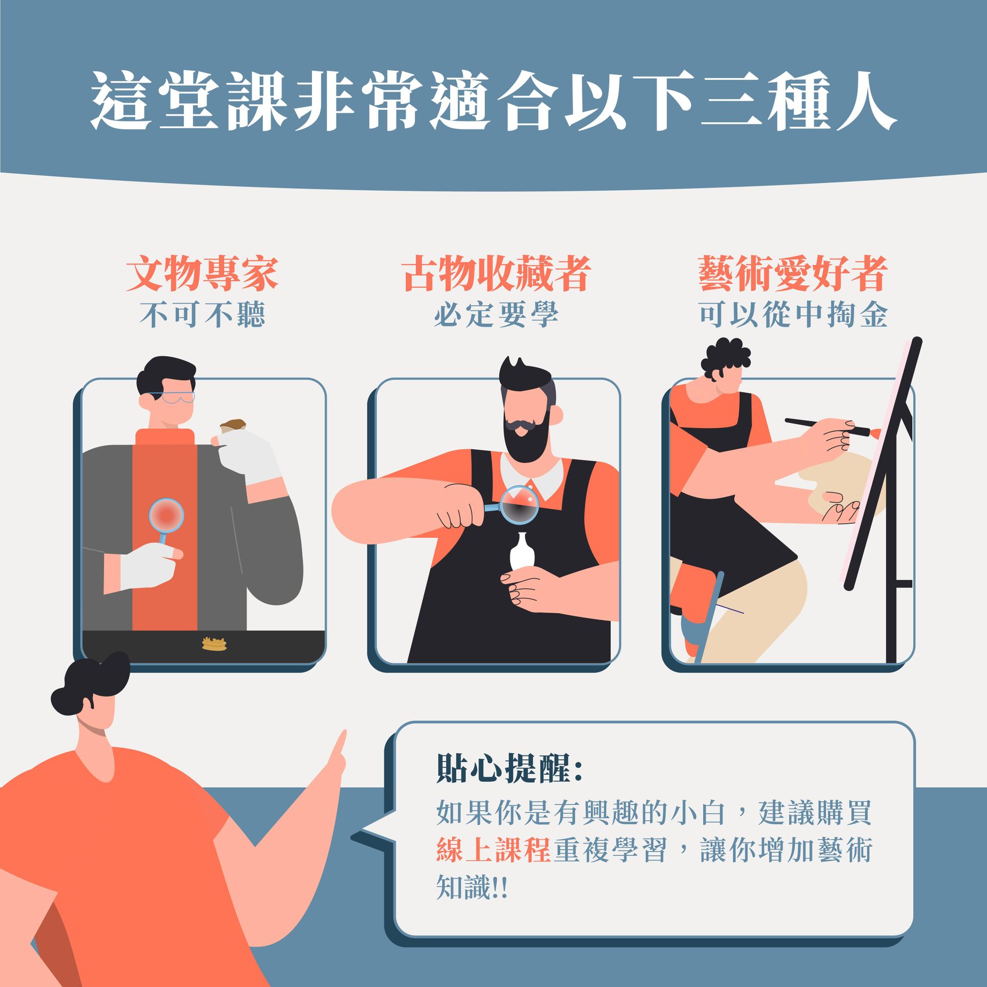 這門課程就是告訴你「故宮國寶」如何驗明正身。「茅廬」藝術塾特別邀請 嵇若昕老師,用正確的觀念、易懂的教學與獨一無二的知識,真知灼見「故宮國寶ID」。
