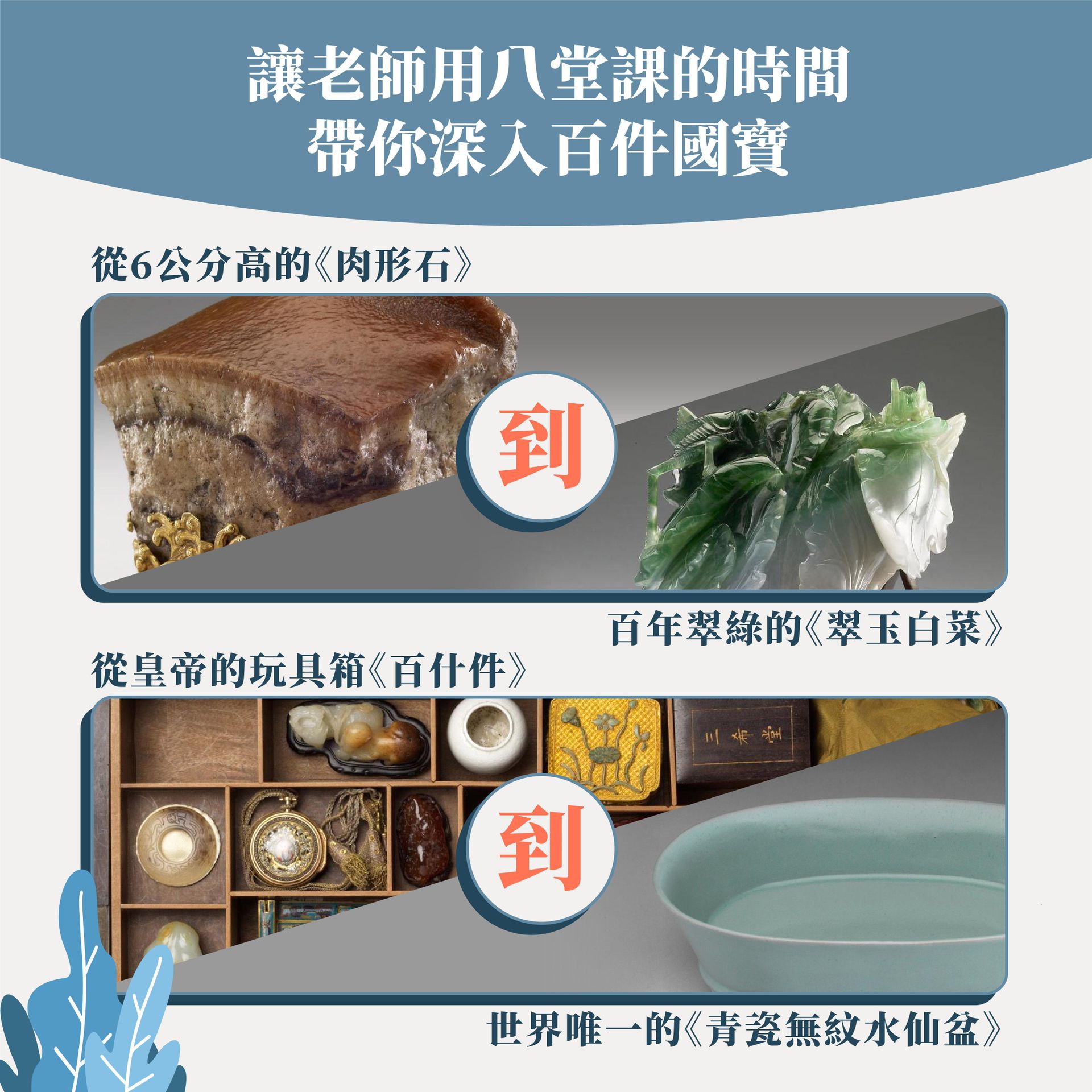 讓你從「翠玉白菜」到「肉形石」;從「百什件」到「青瓷水仙盆」;從「松花石蟠螭硯」到「端石雲龍九九硯」,用最輕鬆的方式與藝術的故事來吸收國寶知識。例如:《翠玉白菜》和《肉形石》,那一件比較重要?