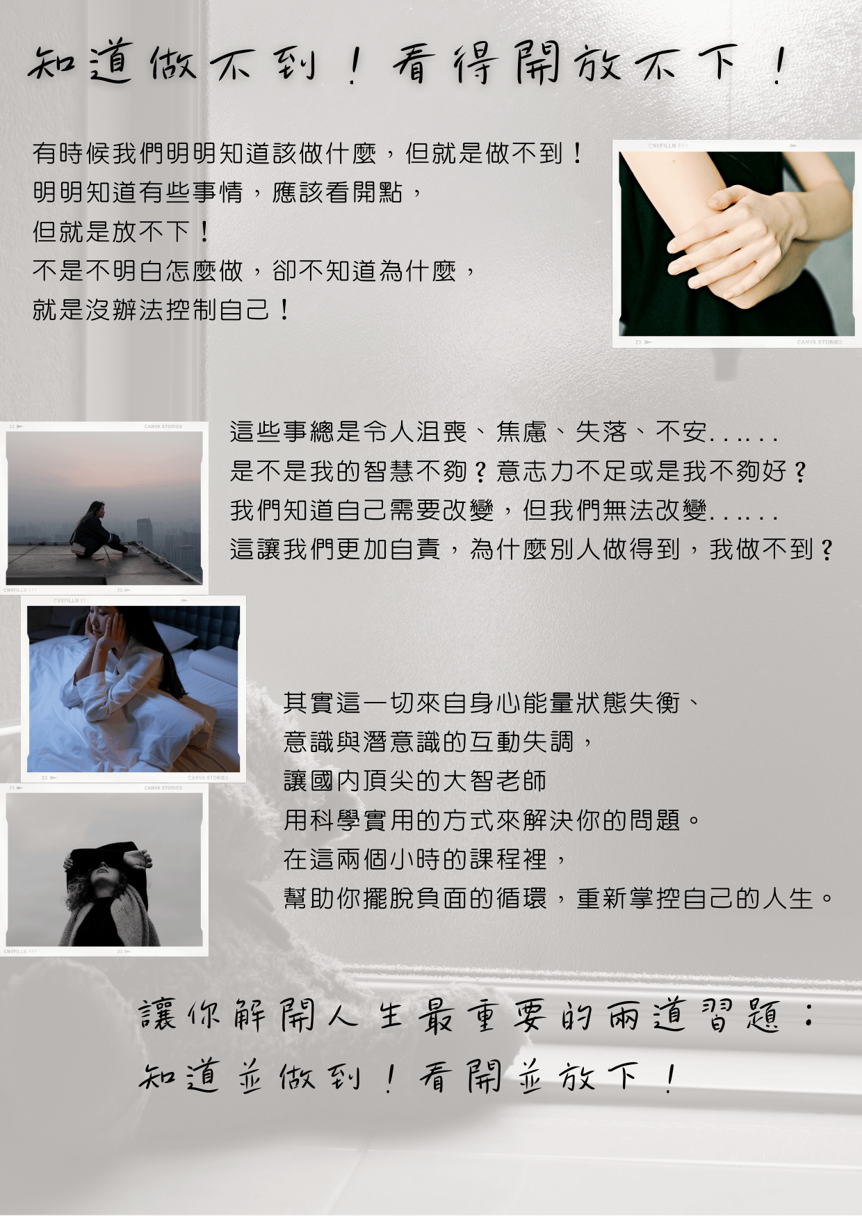 『知道做不到?』『看得開放不下?』這是人生的兩道最難的習題......